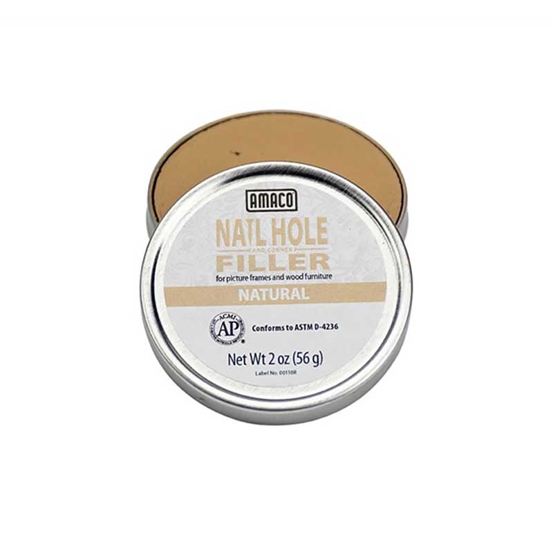 Amaco Nail Hole och Corner Filler är en smidig bättringspasta för spikhål, hörn och sprickor som inte torkar ut eller krymper. Den är särskilt användbar för att fylla hörnen på tavelramar, men det fungerar också bra på trämöbler och andra hushållsartiklar. Använd dessa färger som en uppskattning av den verkliga färgen. Applicera vaxet i hålet eller springan. Torka bort överflödet med trasa. Om exakt färgmatchning är nödvändig, testa på faktiska prover av materialet.