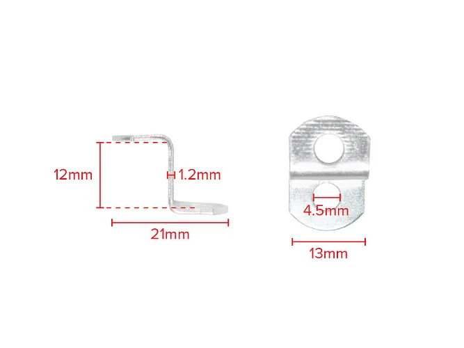 S-formad stålklämma med skruvhål i vardera änden. Används för montering av kilram eller dubbelram där ena ramen har högre eller lägre falshöjd.