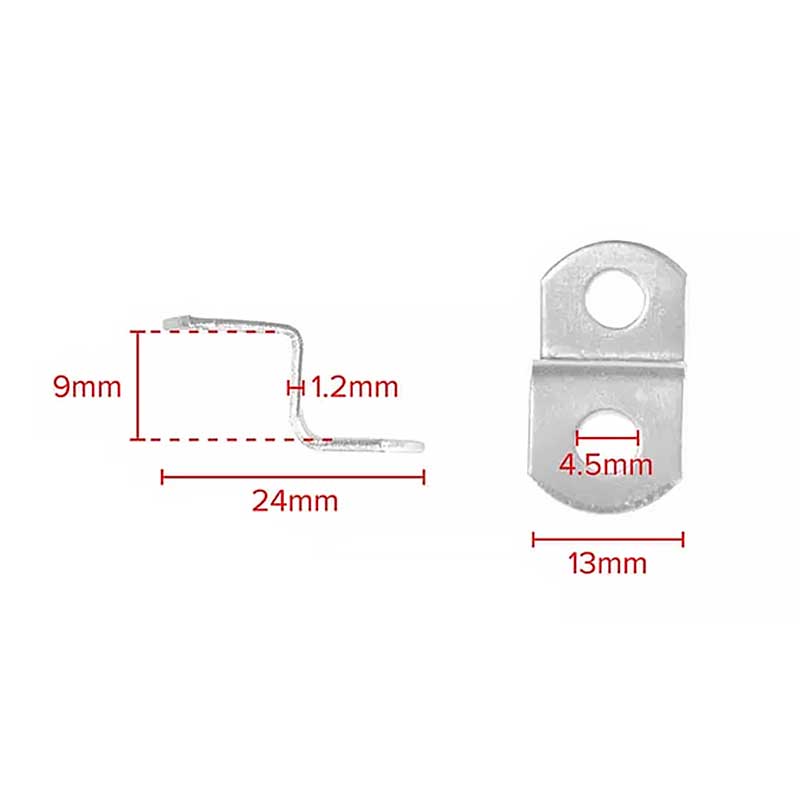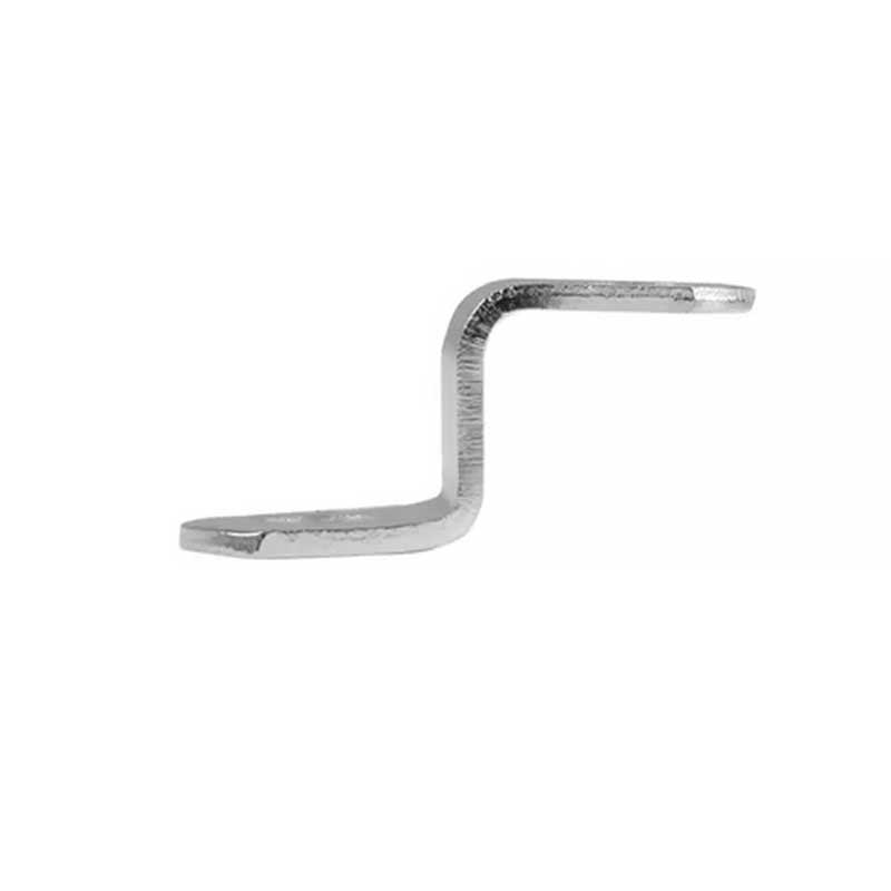 S-formad stålklämma med skruvhål på ena sidan. Används för montering av kilram eller dubbelram där ena ramen har högre eller lägre falshöjd.