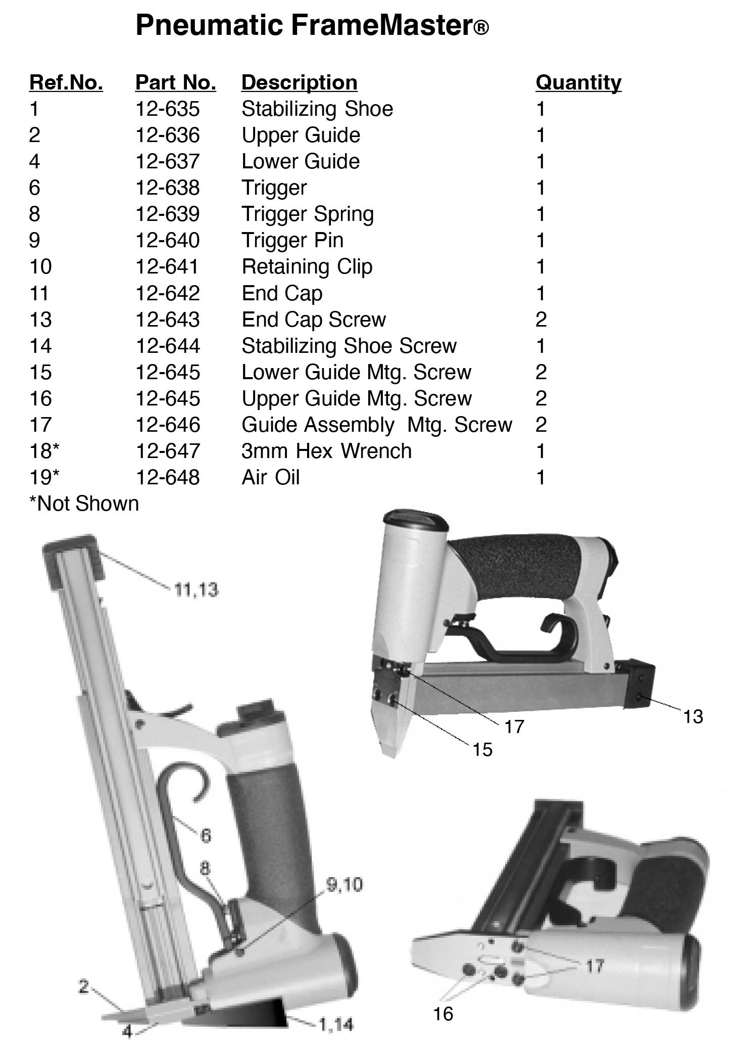 Tryckluftsdriven stiftapparat för montering utav baksidor (16 mm).